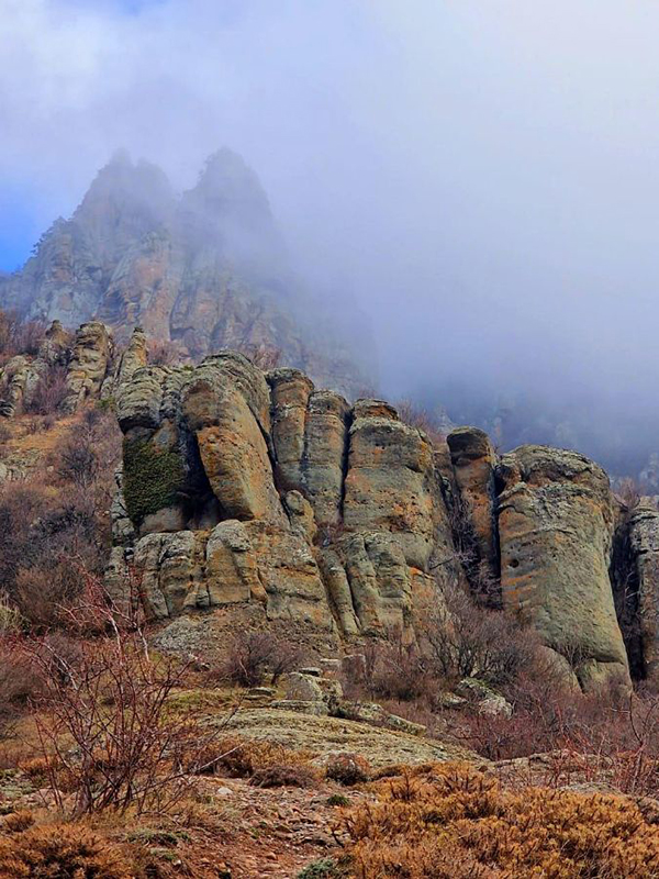 ОПИСАНИЕ: Сегодня большой и очень интересный маршрут к водопаду Джурла через Долину приведений, "Голову Екатерины" и вершину Юж. Демердж. Очень видовой маршрут начнём с мест съёмок "Кавказской пленницы", "Стортлото 82" и ещё многих фильмов. Тут расположен вход в Долину приведений, где утренний туман добавит сказочности и загадочности причудливым скалам. Поднимемся на Солнечную поляну, отдохнём и продолжим подъём к "Голове Екатерины" (г. Аленга). Отсюда открываются особенно живописные виды. Ещё чуть-чуть и мы на вершине Юж. Демерджи. Теперь всё время вниз к водопаду Джурла и по лесной тропе, назад к начальной точке маршрута.