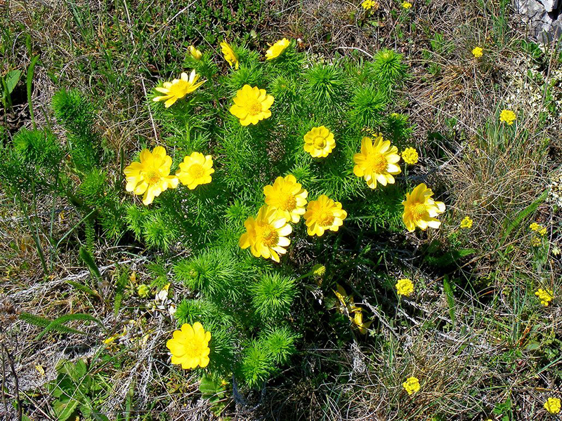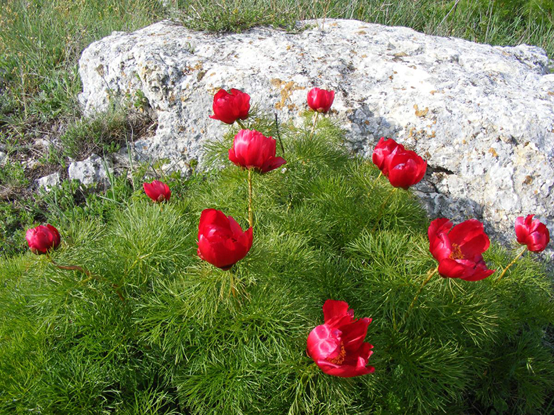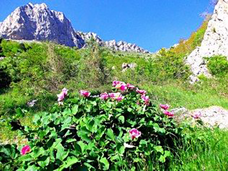 Весной плато покрыто пионами, прострелом крымским, примулами, фиалками и сотнями других цветущих растений.